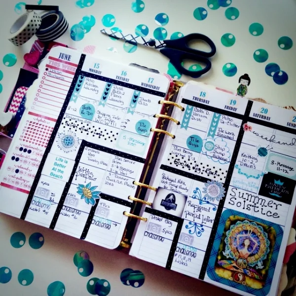 I tried doing something different with my Washi tape this week. I kinda of like it. I am loving the colors. I think this is the second time I have used aqua and black in the last month or so.